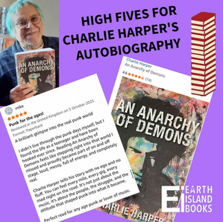 Great to see that Charlie Harper’s brilliant book ‘An Anarchy of Demons’ has been given so many 5 out of 5 reviews from fans and readers on Amazon and GoodReads lately. With an average of 4.6 out of 5 from 74 reviews posted, that’s a fantastically high rating.